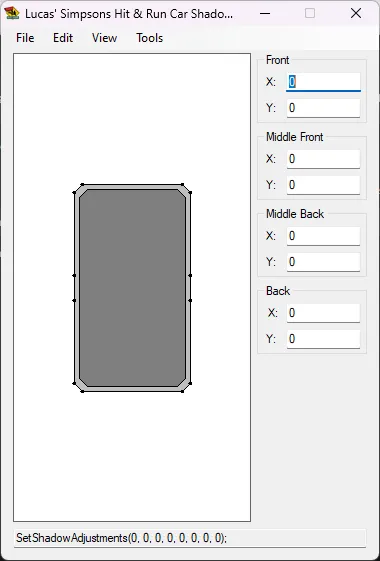 Easily edit car shadow points in car configuration console files (.con) in The Simpsons: Hit & Run.